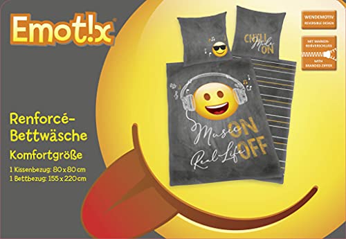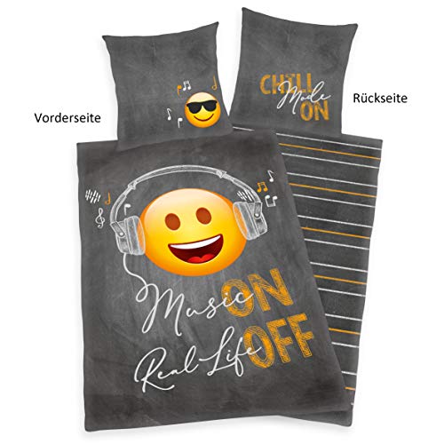 Contenuto: 1x Herding Set di Biancheria da Letto, Emoticon, 1 Federa 80 x 80 cm + 1 Copripiumino 155 x 220 cm, Colore: Multicolore