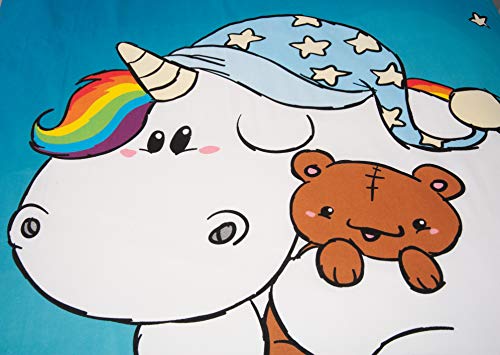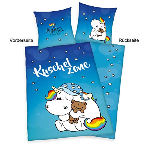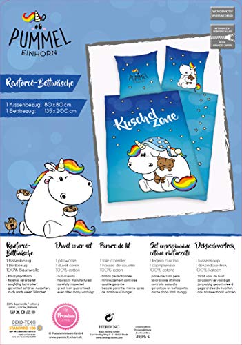 Contenuto: 1x Herding Set di Biancheria da Letto, Pummeleinhorn, 1 Federa 80 x 80 cm + 1 Copripiumino 135 x 200 cm, Colore: Blu