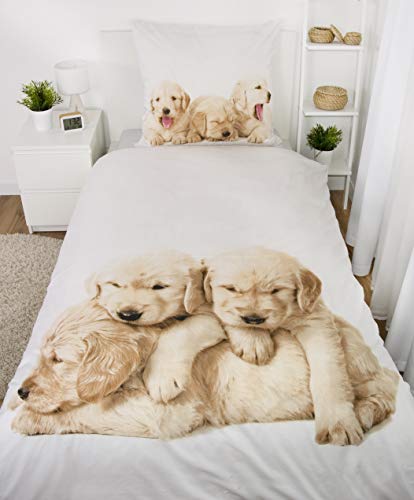 Il regalo ideale per tutte le occasioni: set di biancheria da letto traspirante e reversibile con graziosa stampa di cagnolini, per i giovani amici degli animali