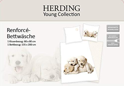 Herding Young Collection cani set di Set Copripiumino singolo e federa, Cotone, bianco, 135 x 200 x cm