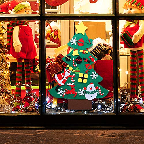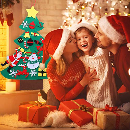 Herefun 100cm Feltro Albero Natale, Feltro Albero Natale con Ornamenti Staccabil Feltro Albero di Natale per Bambini DIY Feltro Albero Natale, Decorazioni Natale per Natale Home Porta Parete