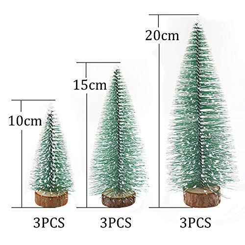 Herefun Mini Alberi di Natale, 9Pcs Albero di Natale Artificiale, Albero di Natale in Miniatura, Innevato Miniature Albero di Natale artificiale Abete Festa di Natale Decorazione, 3 Taglia