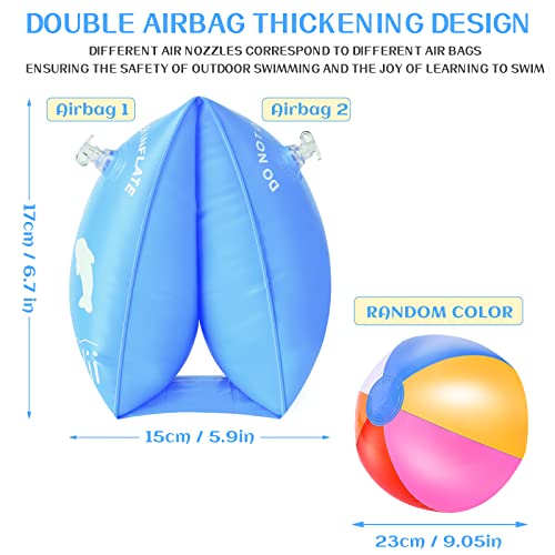 Herefun Bracciali Gonfiabili per Bambini, Bracciali da Nuoto + Pallone da spiaggia, Anello di Nuoto Galleggiante Braccioli Galleggianti, Gonfiabili da Nuoto per Bambini 1 2 3 anni (Blu)