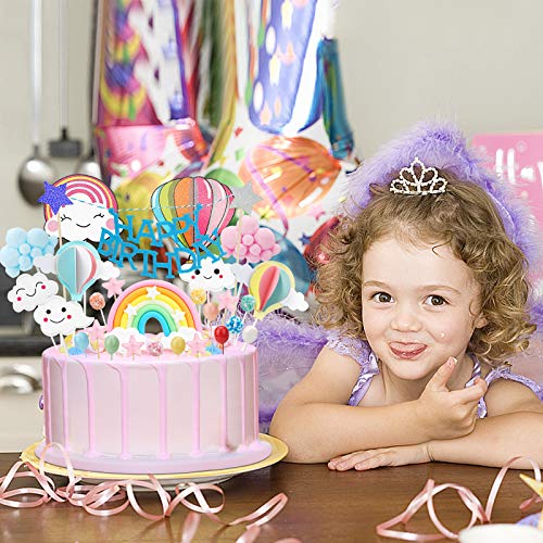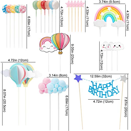 Herefun Decorazione Torta, Cake Topper Kit, Arcobaleno Palloncino Nuvola Happy Birthday Topper Decorazione Torta, Compleanno Decorazioni Torta per Bambini