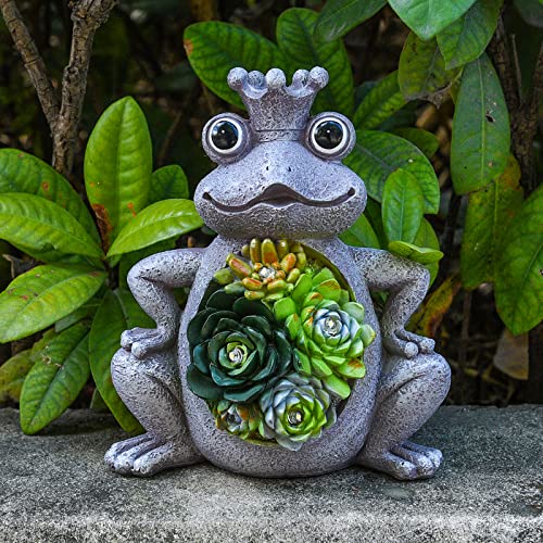 Herefun Figure solari da giardino, rana, decorazione da giardino, lampada a energia solare, lampada da giardino, lampada a LED, lampada a energia solare, decorazione con resina sintetica, impermeabile