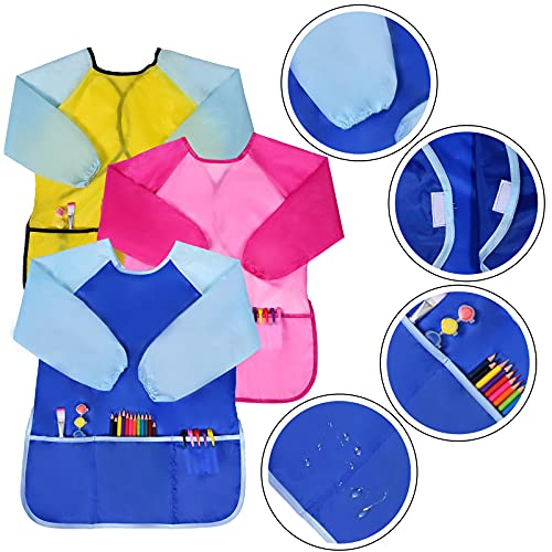 Herefun Grembiule da Pittura Bambini, 3 pezzi Grembiulino Maniche Lunghe Bambini 2-8 Anni, Grembiulino Impermeabile Scuola con 3 Tasche, Grembiule per Bambini per Arte Pittura, Cucina, Artigianato