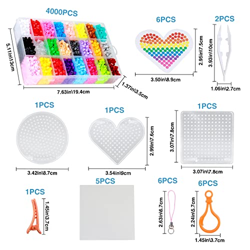 Kit di perline fai da te: le nostre perline da stiro 4000 pezzi includono 24 colori, 3 piastre, 6 carte colorate (stile casuale), 5 carta da stiro, 2 pinzette, 3 forcine, 6 ganci colorati, 6 portachiavi, 1 adesivo biadesivo, 1 portatile in scatola, 1 manuale di istruzioni.