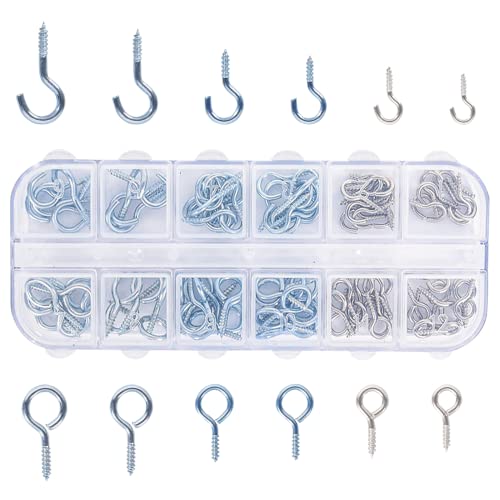 ❤ Ganci a vite in metallo da 100 pezzi, 6 misure diverse,Ci sarà anche una scatola di immagazzinaggio gratuita.