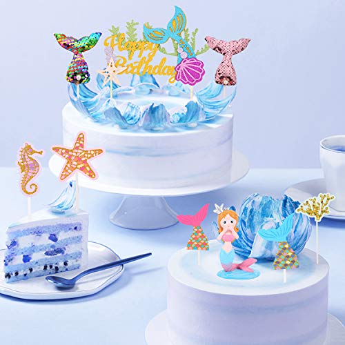 【Shiny Mermaid Decoration】Decorazione per torta a tema sirena,viene fornito con un grazioso motivo a coda di sirena e un motivo a motivi oceanici,Può rendere la tua torta più bella,Crea una festa di compleanno da sogno per bambini!