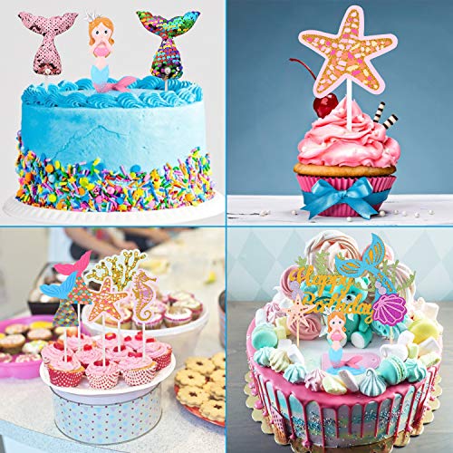 Herefun 34 Pezzi Mermaid Cake Topper Kit Decorations, Cupcake Topper torta glitter decorazioni, Sirena Topper, Ragazzo Ragazza Compleanno, Festa di Compleanno, Baby Shower Feste Nuziali Forniture