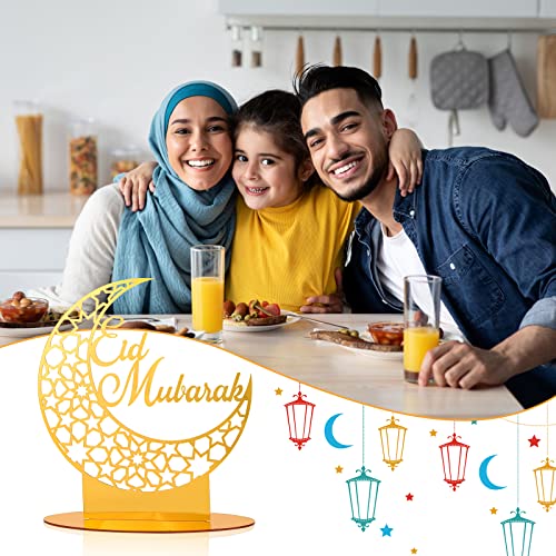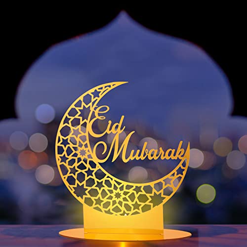 Herefun Ramadan Eid Ornamento, Decorazioni Ramadan Eid Mubarak in Acriliche, Ornamento di Luna per Eid Islamica, Eid Mubarak LED Luci Luna con Candele per Ramadan Lampada Tavolo Party Supplies Regali