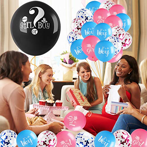 Tutto ciò di cui hai bisogno: riceverai 2 palloncini neri da 36 "con coriandoli rosa e blu, 2 palloncini in foglio di alluminio con stella blu e rosa, 10 palloncini blu con" è un ragazzo "e 10 palloncini rosa con" è una ragazza ", 5 palloncini con paillettes di oro rosa, 5 palloncini con paillettes di blu, nastro in rotolo, nastro a palloncino in rotolo, nodo rosso, ecc.