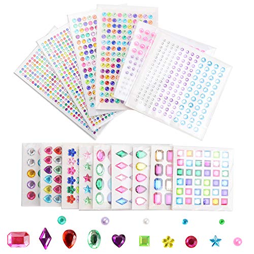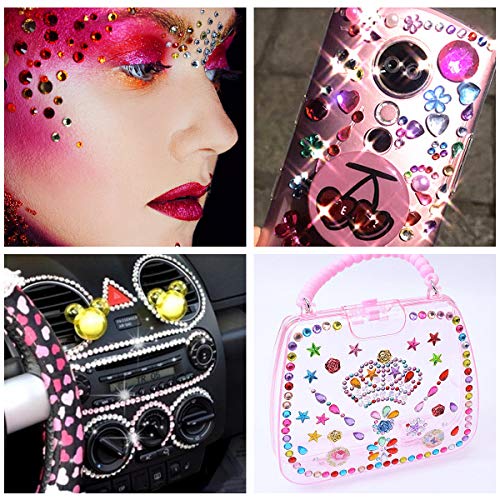 Quantità: 15 fogli adesivi per strass 1800 pezzi in una varietà di colori e forme, diamanti di cristallo scintillante sono abbastanza per voi.