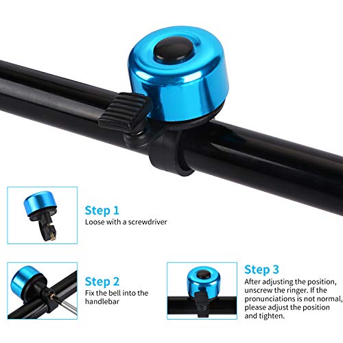 Fácil de instalar: apto para diámetro del manillar: 22.2 mm a 23.8 mm. Seleccione el color de la campana de la bicicleta que desee. Se puede montar fácilmente en el manillar derecho o izquierdo con un solo tornillo.