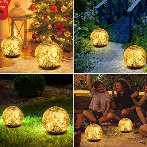 Herefun 2 Luce LED Vetro Crackle, Lampada Solare da Giardino impermeabile, Sfera di vetro crepa Lampada da giardino, Lampada da giardino per Esterno Prato, Terrazze, Cortile (Colori caldi, 12cm)
