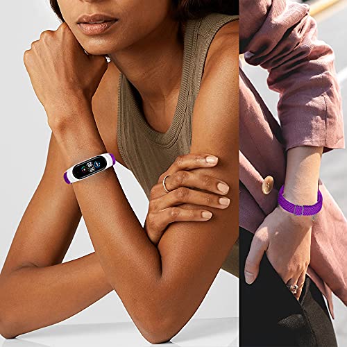 Heremore Cinturino Ricambio per Xiaomi Mi Band 7 / Mi Band 5 / Mi Band 6, Bracciale in Nylon Elasticizzato con Tessuto in Silicone Solo Loop Intrecciato per Mi Band 7 / 5 / 6, Viola