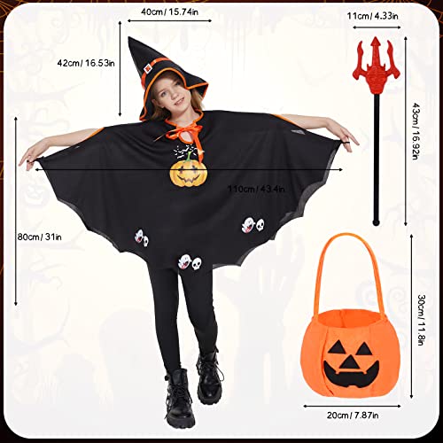 Costume di Halloween per bambini: Riceverai 3 oggetti di scena di Halloween. 1 mantello da mago, 1 cappello da mago e 1 sacchetto di caramelle alla zucca. È un regalo popolare per i bambini durante il festival, i bambini lo adoreranno.