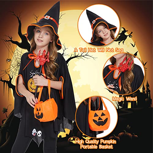 Herenear Costumi di Halloween Strega, Mantello Da Strega Con Cappello, Wizard Costume Halloween Mantello Da Mago Per Bambini con Borsa di Caramelle Zucca Carnevale Mantelli, Cosplay Party (Nero)
