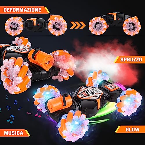 Herenear Macchina Telecomandata, 4WD RC Auto Telecomando 360 Rotazione Acrobatica RC Stunt Car, 1:14 RC Stunt Car con Musica e Luce Batteria 2.4Ghz Sensore Gesto per Bambini da 4 à 12 Ans (Arancione)