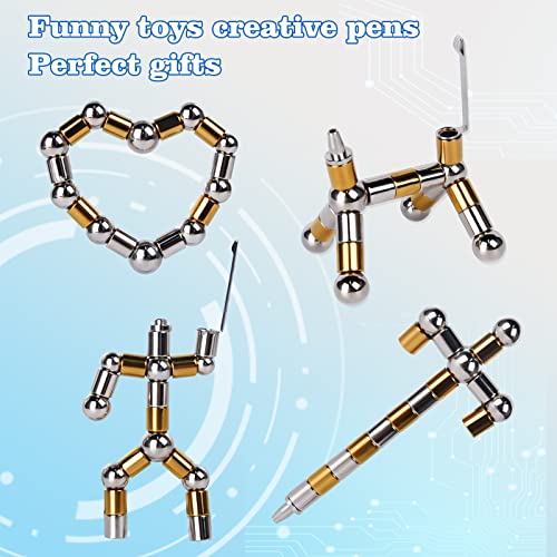 Hereneer Penna Magnetica, Penna a Sfera Giocattolo a Blocchi Magnetici, Decompressione in Metallo Penne Magnete Multifunzione, Penna Magnetica Touch Screen per Uomini Ragazzi (Oro e Argento)