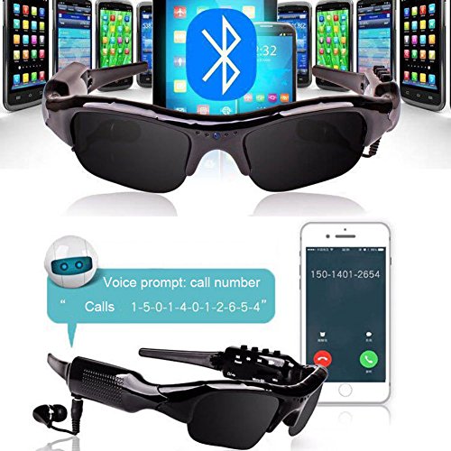 Hereta Occhiali da sole Bluetooth 5 m con scheda micro SD espandibile fino a 32 GB con MP3 + Bluetooth + fotocamera + funzioni video