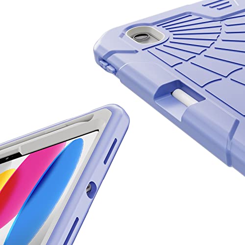 Herize Custodia per iPad 10a Gen 2022 con cilindro per matita supporto |Custodia per bambini per iPad 10a Gen da 10,9 pollici |Custodia robusta in silicone per iPad 10 Gen A2757 A2777 A2696 |Viola