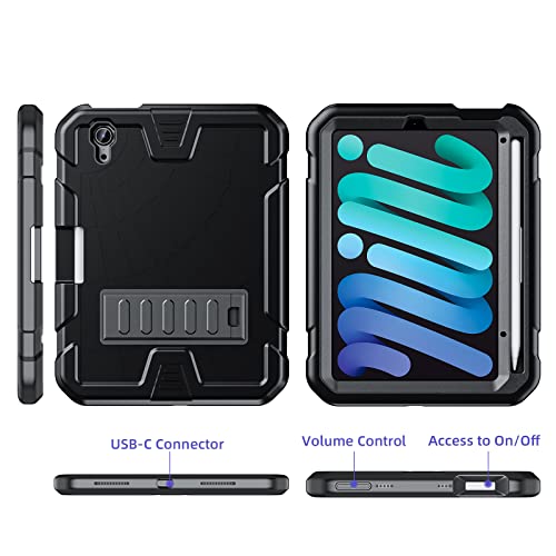 2021 NEW Herize iPad Mini 6 Kids Case | iPad Mini 6th Generation Case 8,3 pollici con supporto per penna | Heavy Duty Rugged Mini 6 Case per A2567/A2568/A2569 Kids Nero