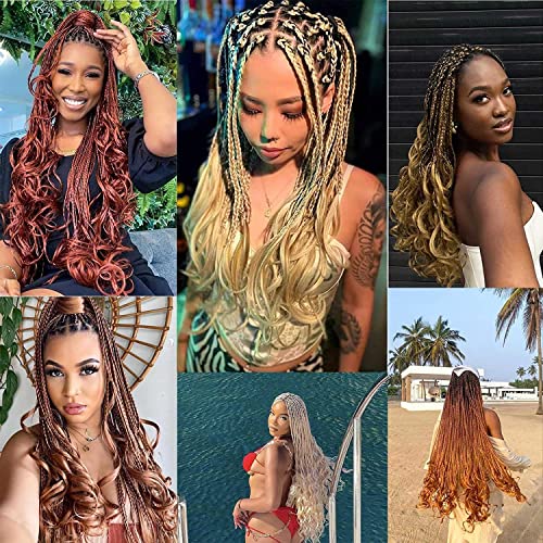Herkeymidy French Curly Braiding Hair Extension 24 inch Loose Wavy 8 Pack Bouncy Braiding Hair Extensions 75g/Pack French Curly Sintic Hair Extensions (613))