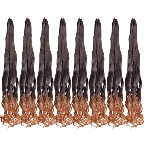 Herkeymidy French Curly Braiding Hair Extension 24 inch Loose Wavy 8 Pack Bouncy Braiding Hair Extensions 75g/Pack French Curly Sintic Hair Extensions (T1B/30)