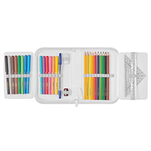 Astuccio scolastico in poliestere imbottito, 31 pezzi, dimensioni 20,3 x 14 x 3,5 cm