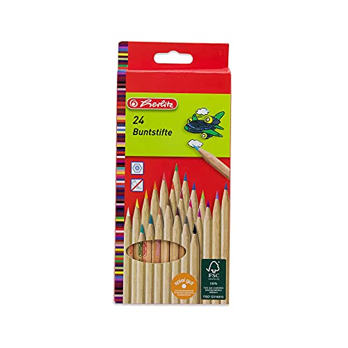 Herlitz - Matite colorate in legno con nome, incisione personalizzata, esagonale, incisione personalizzata (24)