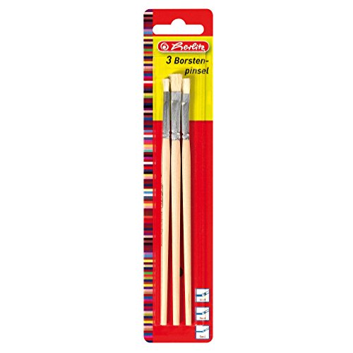 Herlitz - Pennello con setole, dimensione: 4, 6 e 8 (Confezione da 3), legno naturale/metallzwinge