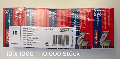 Herlitz - Punti per spillatrice 24/6, in metallo, 10000 pezzi (10 scatole da 1000 pezzi ciascuna)