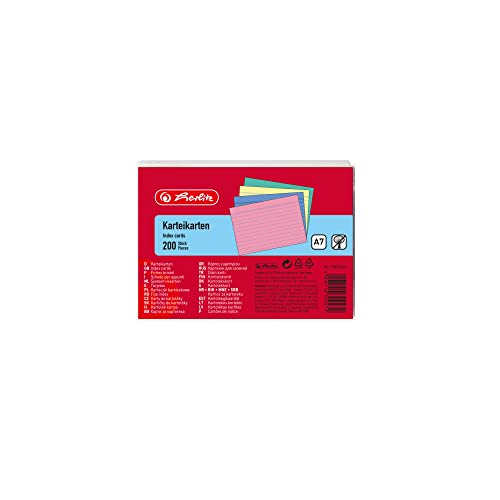 Herlitz Schede per appunti, 200 pezzi, Formato A7, Multicolore