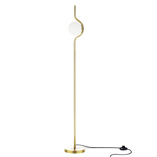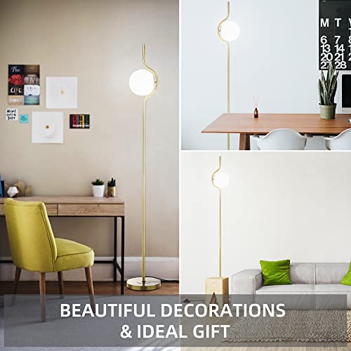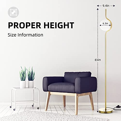 HERLLY - Lampada da terra moderna verticale in oro, per interruttore a pedale, metà secolo, per la lettura domestica, E26 lampada da terra per camera da letto, con paralume a globo e lampadina