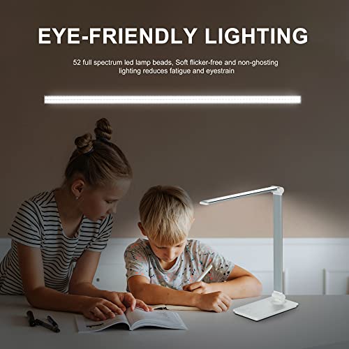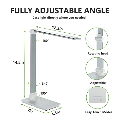 HERLLY Desk Lamp with Timer,USB Reading Lamp with 5 Lighting Modes, Dimmable LED Table Lamp for Work and Study,Eye-Caring Desk Light with Touch Control for Office and Home