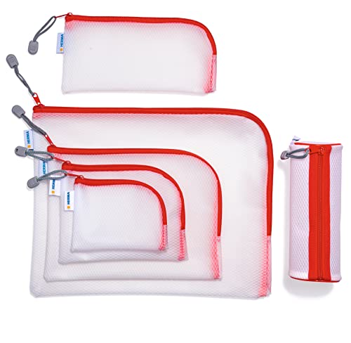 HERMA 20002 Trousse per cosmetici con cerniera, trasparente (23 x 11 cm) piccola tasca richiudibile con cerniera per cellulare, cavo di ricarica, liquidi, penne, chiavi, borsa da toilette in rosso