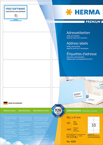 HERMA Etichette per Indirizzi, 99,1 x 57 mm, Etichette Adesive A4 per Stampante, 10 Etichette per Foglio, Bianco