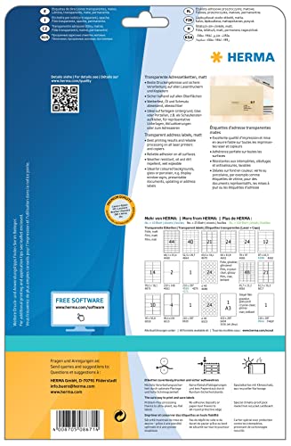 HERMA Etichette per Indirizzi, 99,1 x 38,1 mm, Etichette Adesive A4 per Stampante, 14 Etichette per Foglio, Trasparente