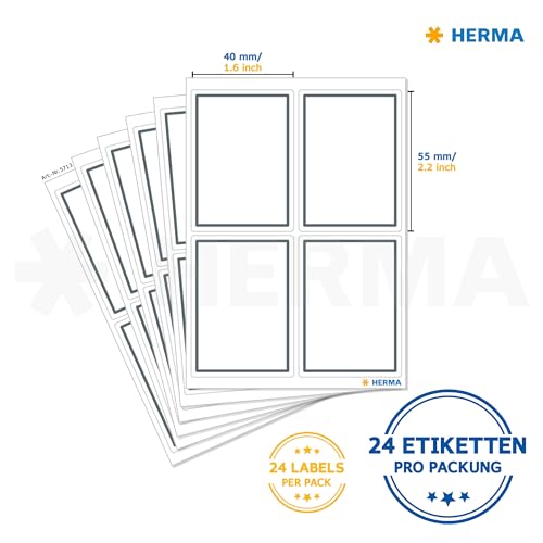 HERMA 5713 Etichette per libri con bordo grigio, autoadesive neutre in carta per la scuola per bambini, ragazze e ragazzi, 24 etichette per la scuola
