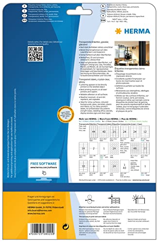 HERMA Etichette per Marcatura, 210 x 297 mm, Etichette Adesive A4 per Stampante, 1 Etichette per Foglio, Trasparente