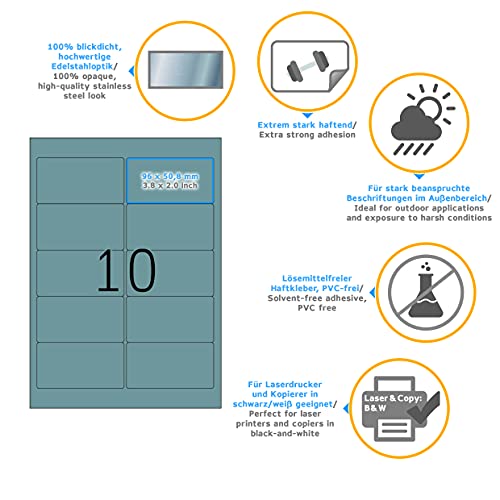 Etichette per targhette, argentato, A4, 96 x 50,8 mm, estremo potere adesivo, impermeabili, antistra
