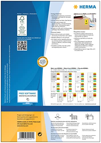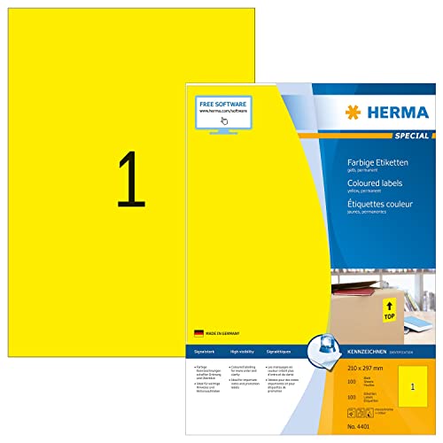 Etichette colorate, A4, 210 x 297 mm, giallo, adesivo permanente