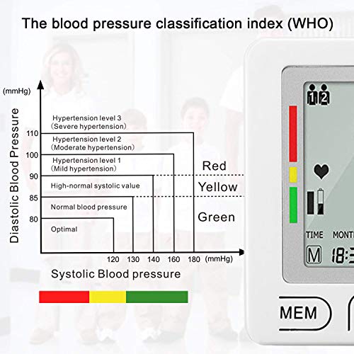 【Modalità utente doppia】: 2 x 90 set di memorie doppie per una grande capacità. Disponibile per 2 persone. I livelli di pressione arteriosa sono rilevati quotidianamente per facilitare il confronto dei dati sulla pressione arteriosa e per tenere aggiornati i cambiamenti della salute fisica.