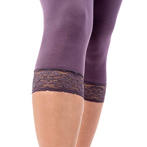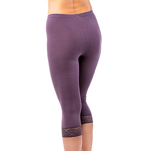 HERMKO 5722 Leggings Capri da Donna con Gambali in Cotone/Spandex 3/4, Farbe:Prugna, Größe Damen:36/38 (XS)