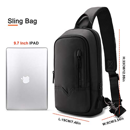 HEROIC KNIGHT Zaino Monospalla Uomo,Borsa a Tracolla Impermeabile con Ricarica USB,Borsa a Spalla per Viaggio, Ciclismo,Lavoro,Sport(nero)