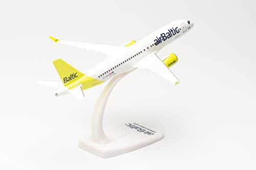 Herpa Aeromodello Airbus A220-300 AirBaltic scala 1:200 - Snap-Fit, aeromodello, modello di aereo per collezionisti e hobbisti, miniatura deco, modello a innesto con supporto in plastica