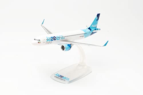 Herpa aeromodello Airbus A320neo Jazeera Airways, 9K-CCA scala 1:200 - Snap-Fit, aeromodello, modello di aereo per collezionisti e hobbisti, miniatura deco, modello a innesto con supporto in plastica