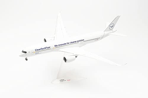Herpa modello di aereo Airbus A350-900 - Lufthansa CleanTechFlyer, D-AIVD, scala 1:200 - modello di aereo, pezzo da collezione, miniatura, statuetta con supporto in plastica