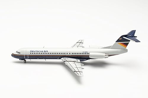 Herpa modello di aereo Deutsche BA Fokker 100 - D-ADFA in scala 1:200 - modello di aereo, pezzo da collezione, miniatura deco, statuetta senza supporto in metallo